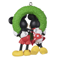 With their trademark cheerfulness, Mickey Mouse and Minnie Mouse always make the holidays bright. Celebrate your love for these beloved Disney characters or for a special someone in your life with this cute Christmas tree ornament featuring the happy couple peeking through a festive wreath. Give it to your guy or gal to tell them you love spending Christmas together.
