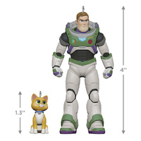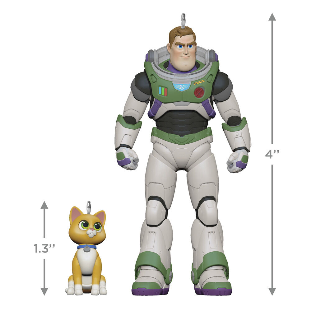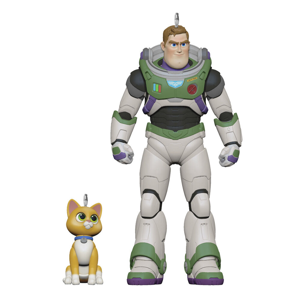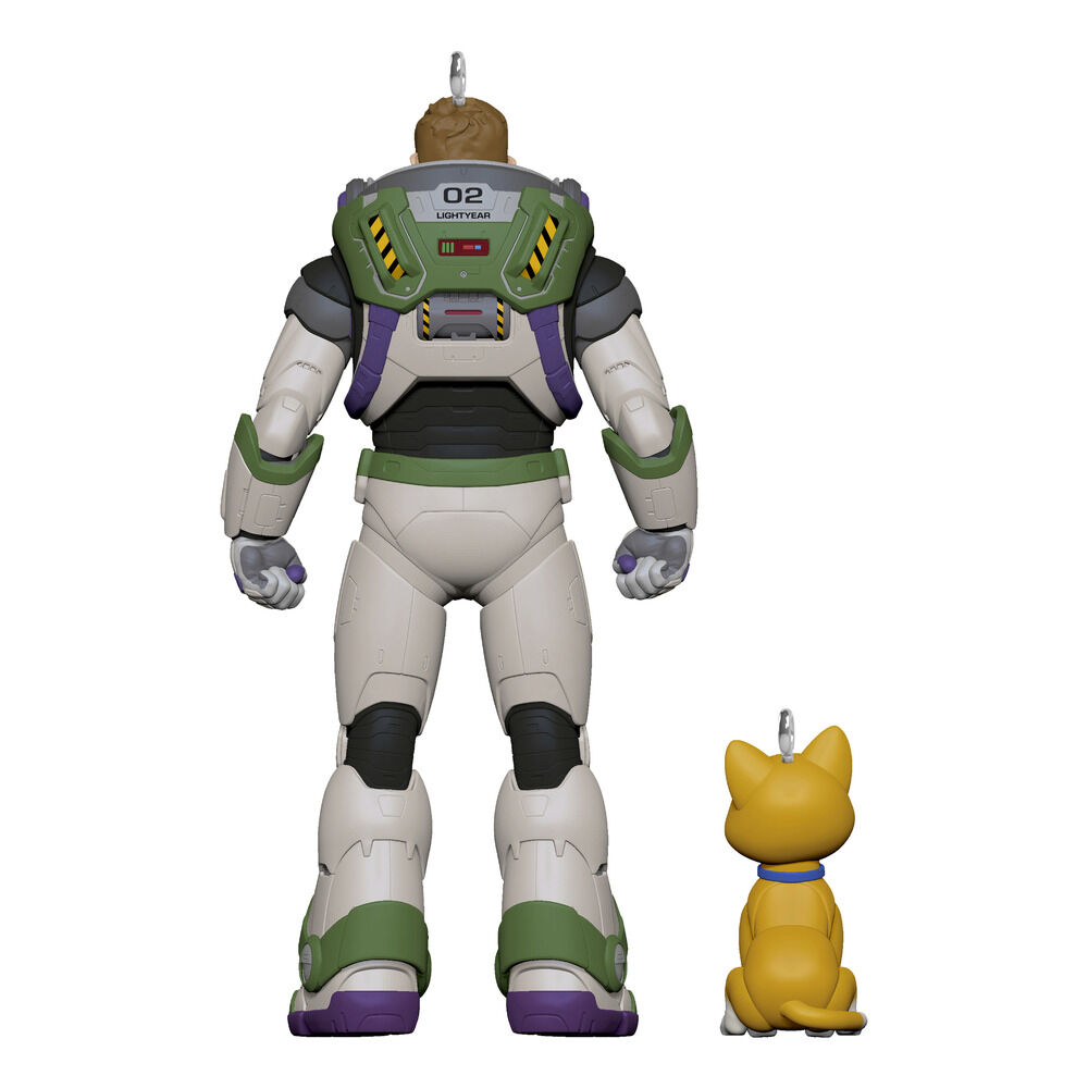 We all know about Buzz Lightyear, the toy who teamed up with Woody and the gang in the "Toy Story" films. Now it's time for the definitive origin story of the hero who inspired the toy. Relive the adventures of the new Disney/Pixar movie "Lightyear" with this set of two Christmas tree ornaments that includes the legendary Space Ranger himself, Buzz Lightyear, and his sidekick, Sox the robot cat.