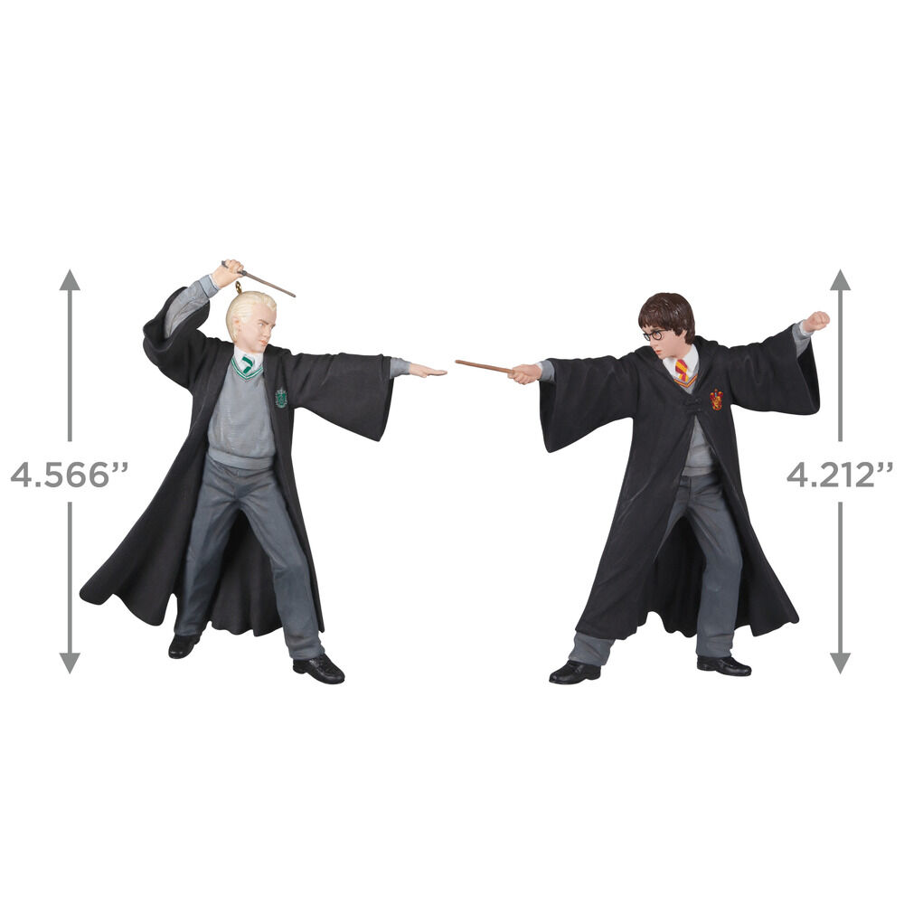 - Harry Ornament Size: Approx. 8.6cm x 10.6cm x 11.4cm. Draco Ornament Size: Approx. 10.2cm x 11.4cm x 3.8cm.