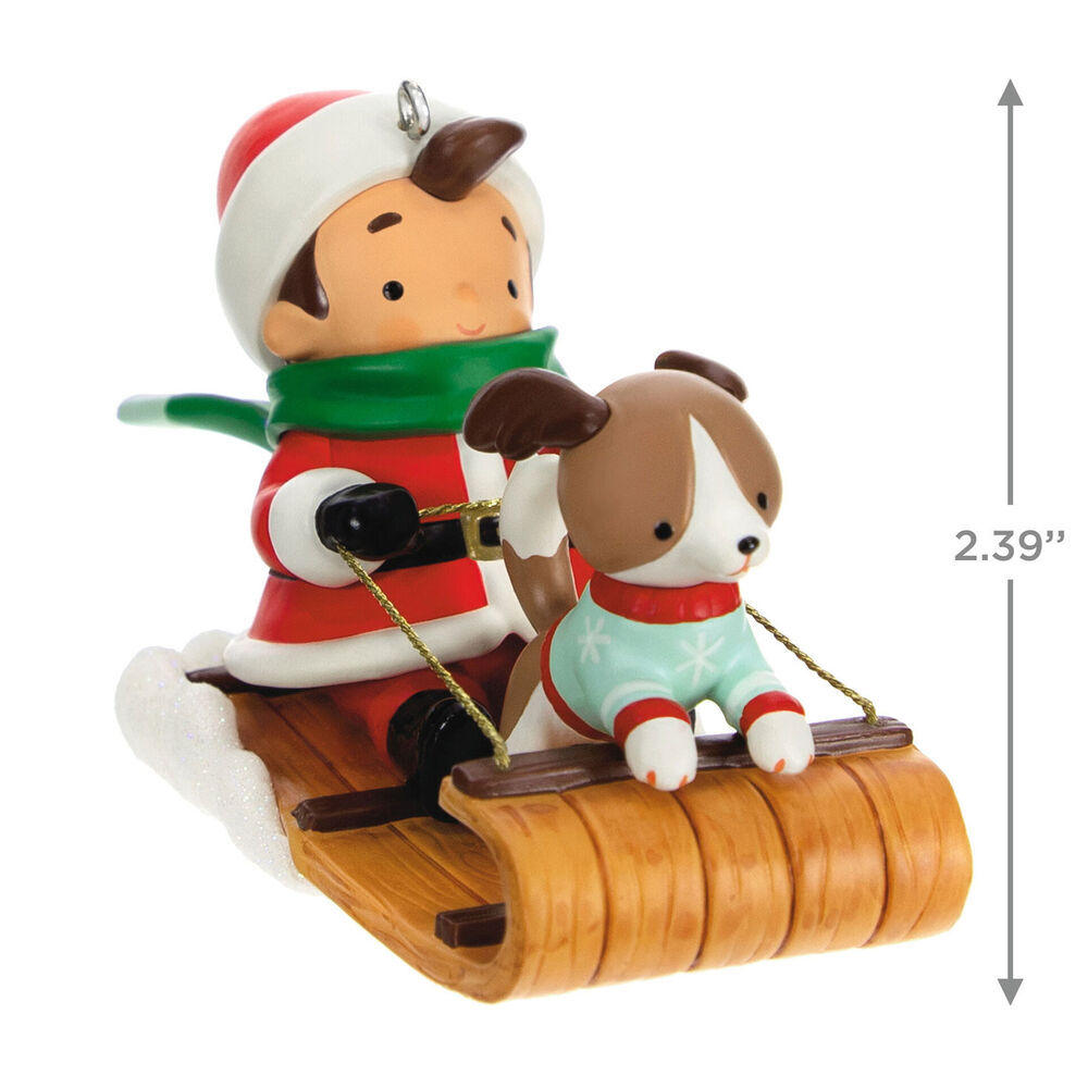 What was Santa Claus like before he grew into the jolly old elf we all know and love today? This cute Christmas tree ornament gives a glimpse at Young Santa and his puppy dog pal enjoying the iconic pastimes of children like sledding on a snow day!