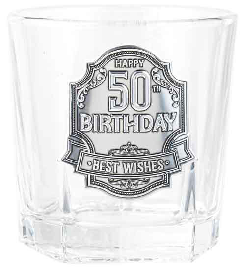 50TH BIRTHDAY BADGE WHISKY GLASS