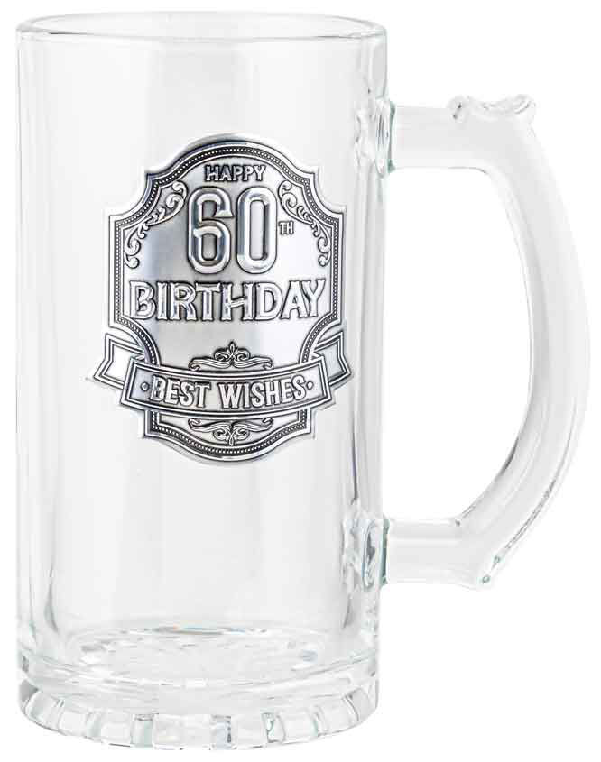 The silver badge reads "Happy 60th Birthday - Best Wishes".
