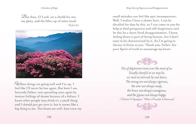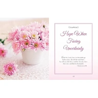 A Garden of Hope offers inspiring reflections on hope and how God sees us through even the most desperate trials. More than 300 prayers and quotes span 10 chapters with such topics as hope during hard times, enduring physical pain and illness, hope in times of loss, and hope for hurting relationships. There are full-colour photos and silver gilded pages provide an elevated experience. The cover is padded with an affixed metal charm. There is also an attached ribbon bookmark.