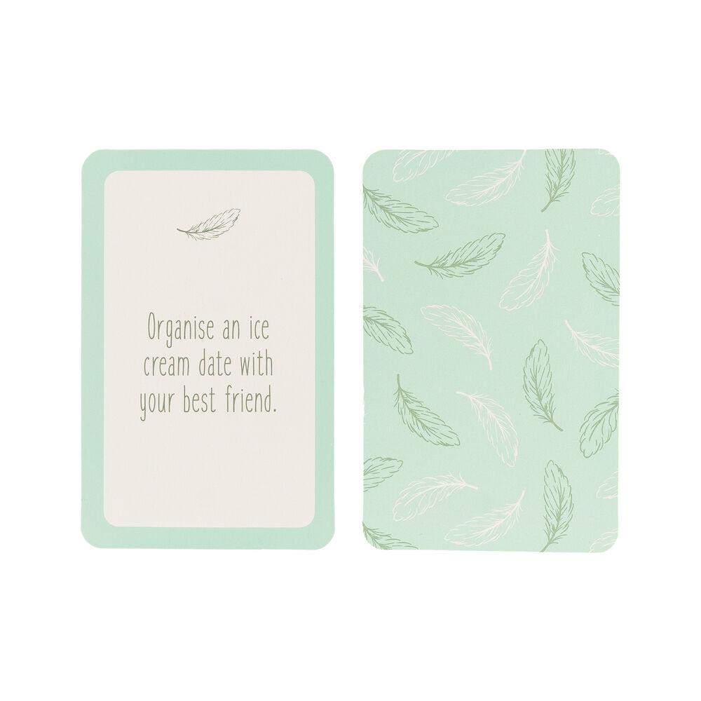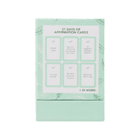 31 full coloured affirmation cards inside full printed cardboard box that doubles as the card holder/stand.