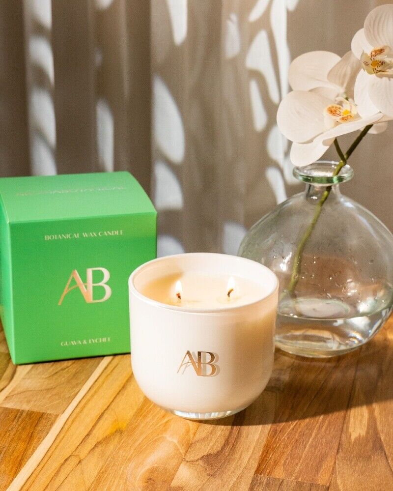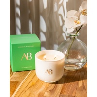 Indulge your senses with light and fragrance from this 2 wick natural botanical wax candle blended with Australian-Made fragrance, essential oils & pure extracts. Hand poured into white glass with embossed chrome plated lid.