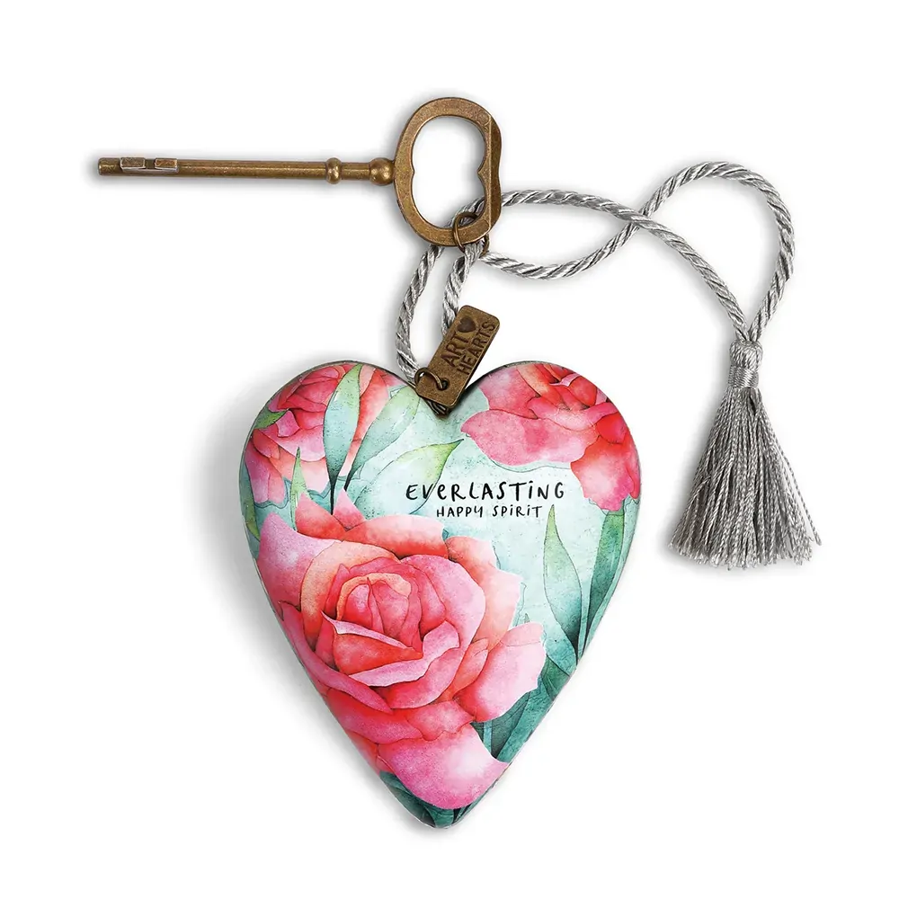 Comes with special packaging and ornamental key. The Art Heart is uniquely designed to either hang as a conventional ornament with a hanging cord or to stand. A beautiful, ornamental key is included, which serves as an easel when placed in the keyhole opening at the back of the sculpture, enabling it to stand.