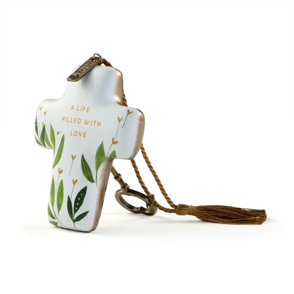 Artful details lovingly tell someone special you care. The Love Artful Cross is handcrafted with the message "A life filled with love" delicately painted on it. A heartfelt gift for a birthday, to show support or 'just because'.
