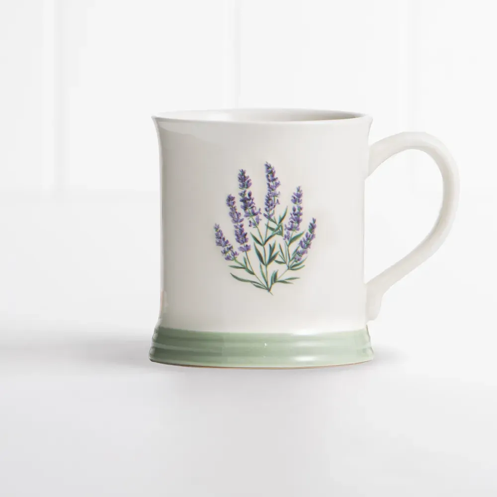 From Ashdene's Floral Collective range, a mug featuring a beautiful depiction of a bunch of lavender blooms. The base of the mug is a calm sage green.
