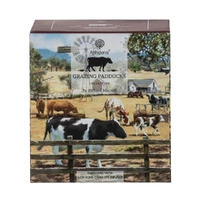 The Grazing Paddocks Collection brings together some of the most beloved dairy cow breeds, that will delight any cow lover. Illustrated by Richard Macniel, the artwork features Holstein and Jersey cows accompanied by their adorable calves. Their peaceful and instinctive nature has been captured as they roam and rest among the paddock. The picturesque Australian landscape forms the perfect backdrop for the cattle.