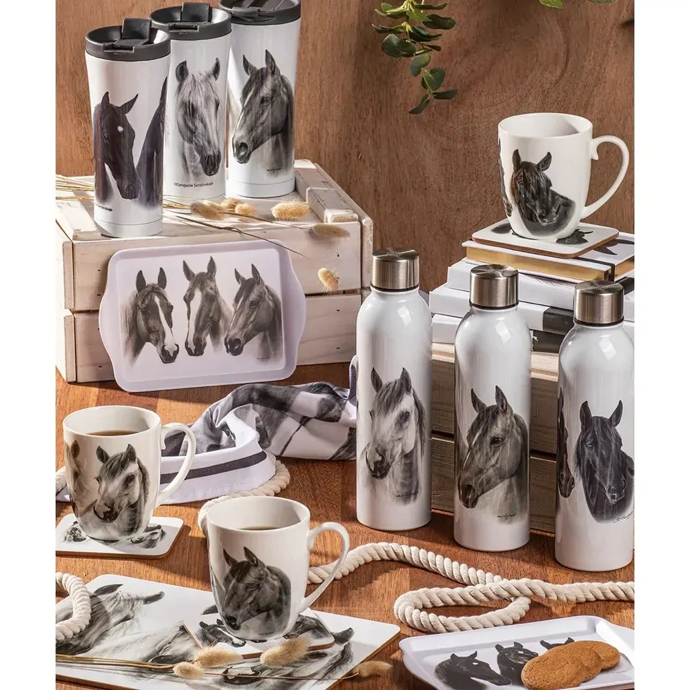 ASHDENE HORSE TRIO - BLACK TRAVEL MUG