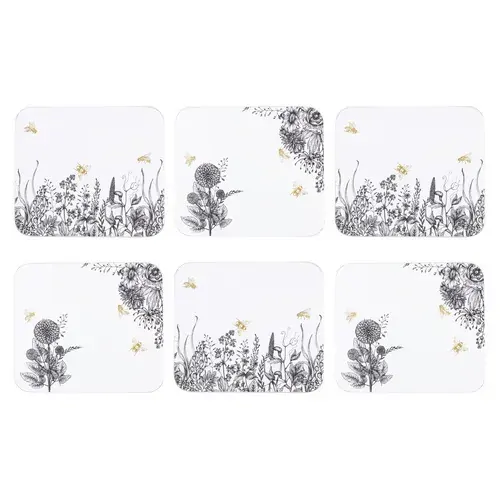 - Set includes 6 coasters featuring 2 different designs