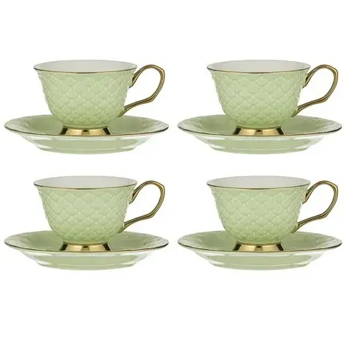 ASHDENE RIPPLE - CUP & SAUCER SET OF 4 - PISTACHIO