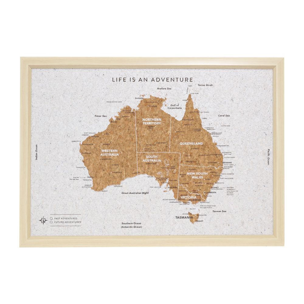 The Small Australia Map framed canvas is a fun and stylish way to keep track of your travels and plan for new adventures around Australia! Travel Boards are framed maps that you can mark with colour-coded, metallic marker pins; to keep a record of where you have travelled to, and mark the places on your wish list.