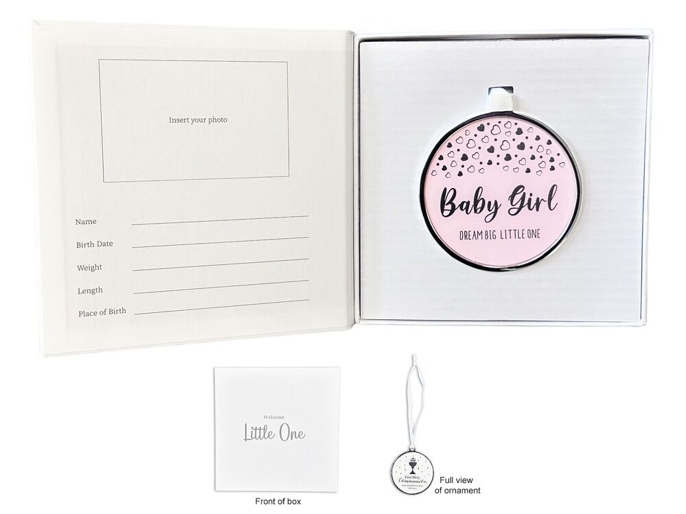 BABY GIRL ORNAMENT WITH RECORD IN GIFT BOX