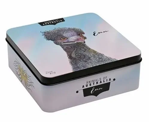 A square tin with art of an Emu on the lid, full of quality lemon myrtle-flavoured Butter Finger biscuits. This tin is part of the Animals of Australia range. A great Christmas gift for friends, family, coworkers and more.