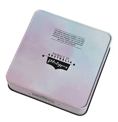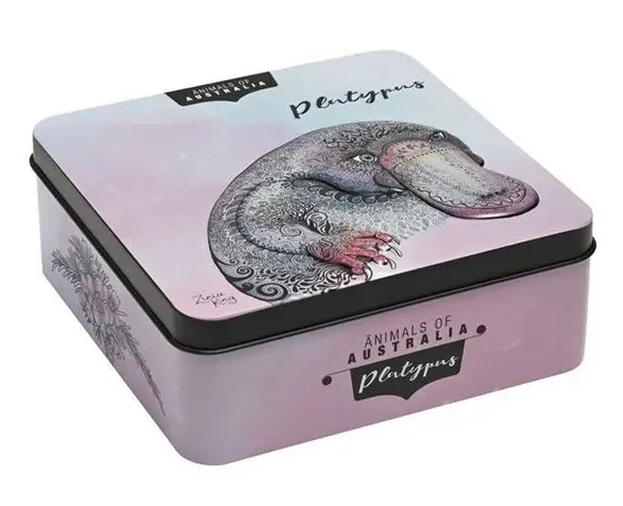 A square tin with art of a Platypus on the lid, full of quality macadamia-flavoured Butter Finger biscuits. This tin is part of the Animals of Australia range. A great Christmas gift for friends, family, coworkers and more.