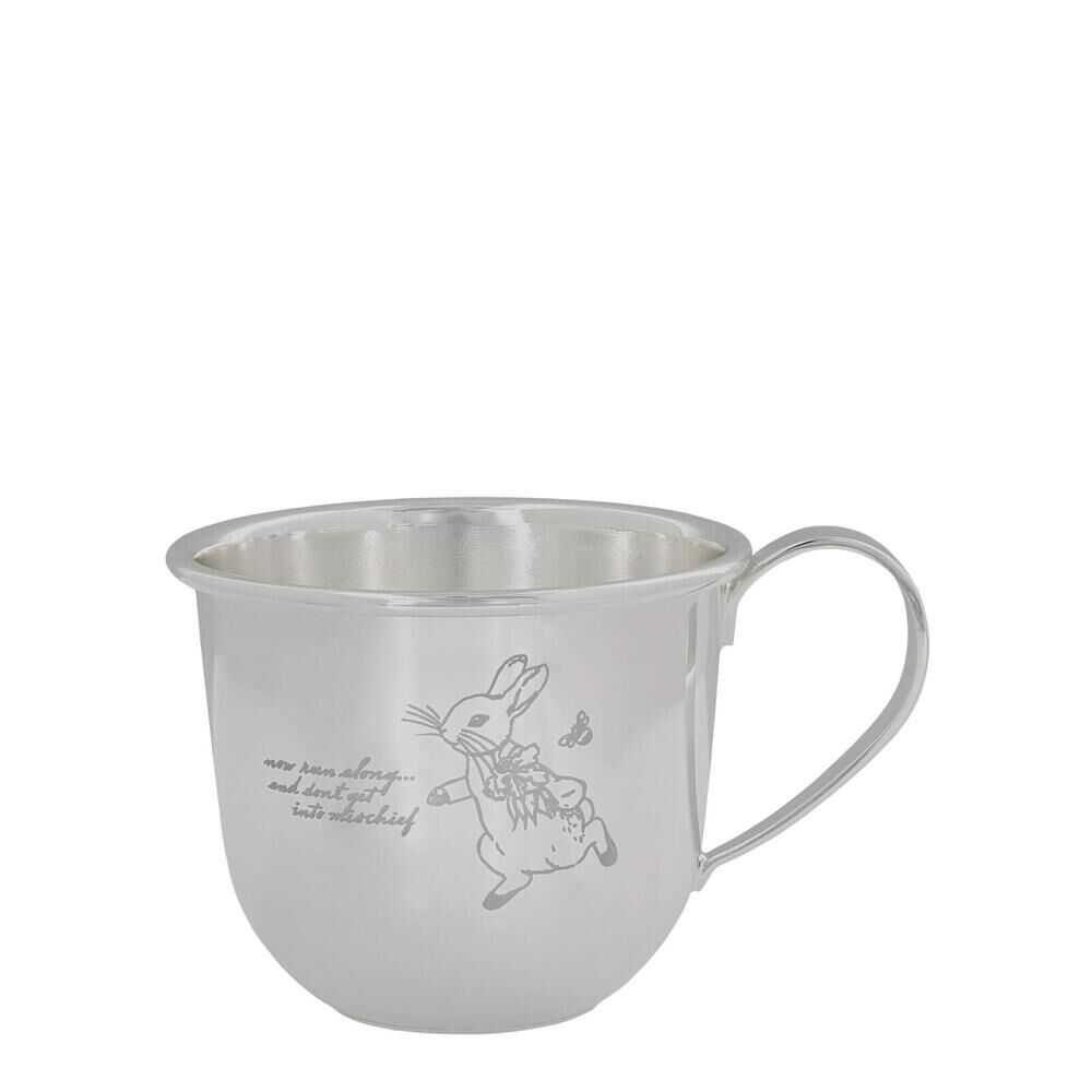 BEATRIX POTTER NEW BABY - SILVER PLATED BABY MUG WITH LASER PETER RABBIT