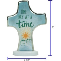 Do you need a reminder of God’s love and strength at your bedside? Or do you need a gift to give a loved one who is travelling or in the hospital? The bedtime prayer cross is the perfect gift. Express your faith and spirituality with this beautiful cross. Perfect for displaying on your nightstand at home, by a hospital bed, or anywhere you travel. This cross is small enough to travel wherever you may go. Features an inspirational message that reads “One day at a time.”