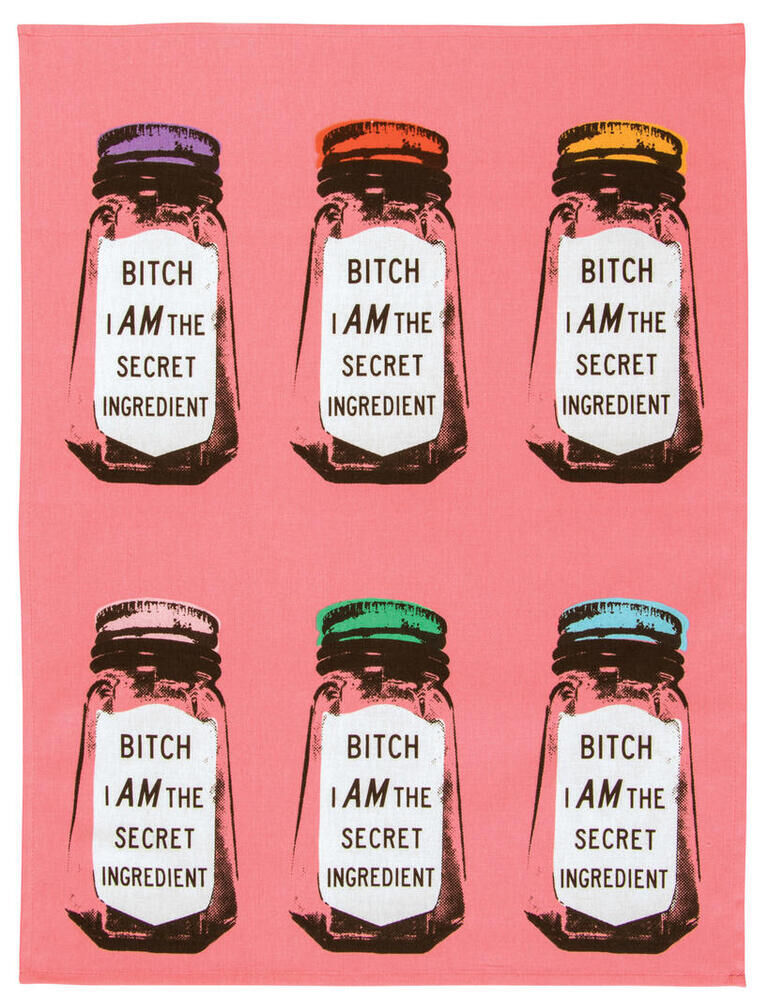- Tea Towel Reads: "BITCH I AM THE SECRET INGREDIENT".