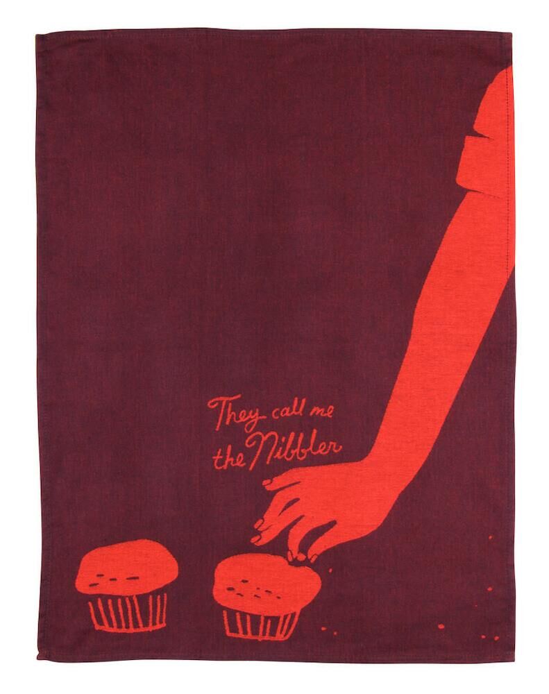 - Tea Towel Reads: "THEY CALL ME THE NIBBLER".