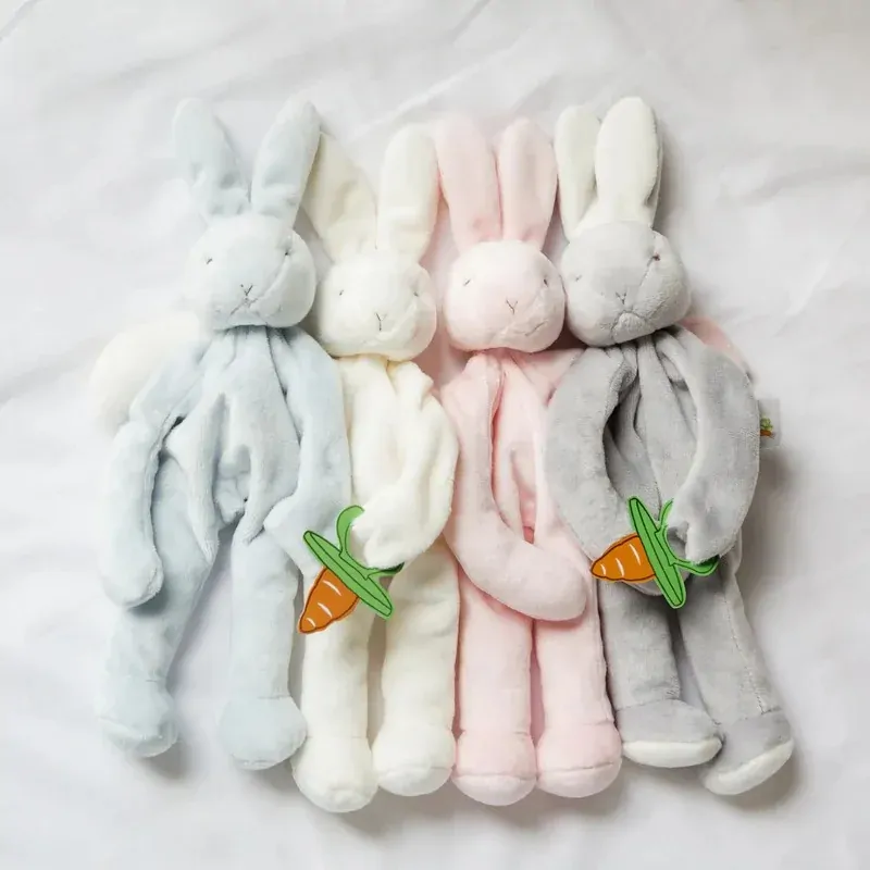 Blossom Bunny Silly Buddy is the perfect gift for your wee one with multiple ways to soothe. Super-soft and floppy, super silly, and oh so useful, this take -a-long pal will tie onto baby's stroller, crib or car seat. With pacifier holder hand loop and fun rattling head, this is sure to be a favorite security item of Baby and Mom and Dad alike!  Signature three carrot tag for little one's fingers.