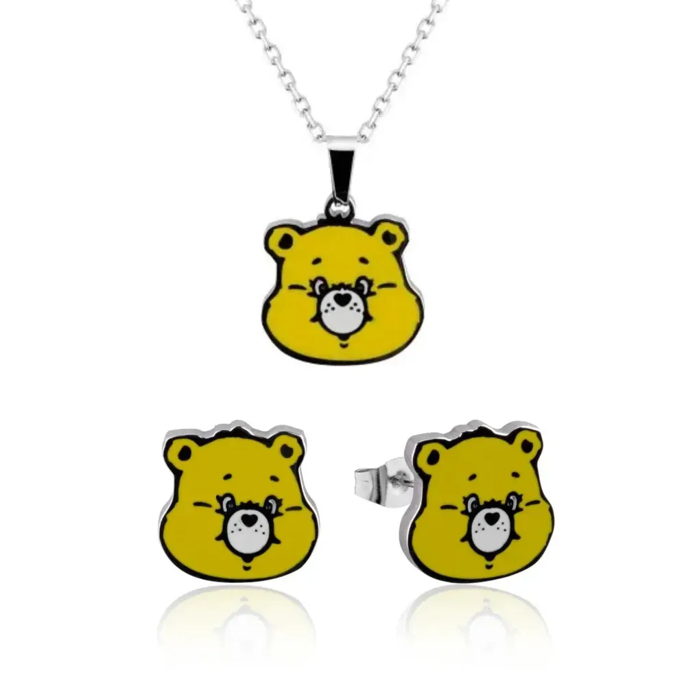 Bring sunshine wherever you go with this bright yellow Funshine Bear enamel necklace. Cute and cheerful, it adds a fun pop of colour to any outfit, perfect for fans who love a playful and sunny vibe.