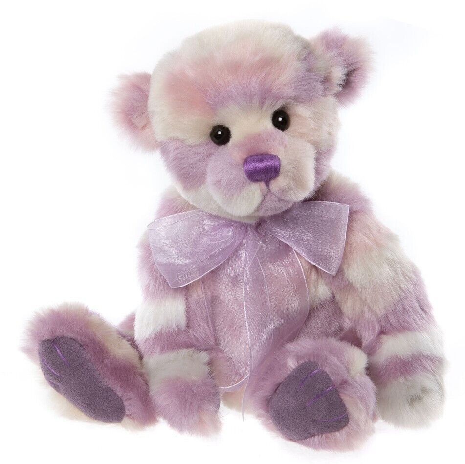With her delightful patchwork of pastel pink, lilac, and white plush fur, she's ready to join your hug and offer cuddles galore. Adorned with a charming organza bow around her neck, Hollyhock is an absolute sweetheart.