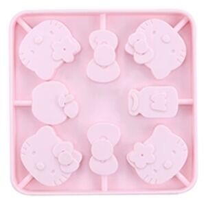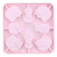 A lollipop mould featuring Hello Kitty, an apple, her signature bow and a milk bottle! This mould is soft and non-stick, making it easy to release and clean.
