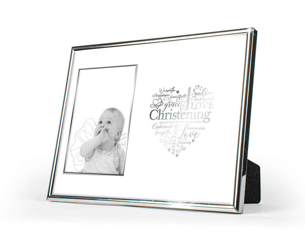 This unique photo frame by Landmark celebrates your child's Christening with a word heart, space for a photo and embellished with a silver edge.