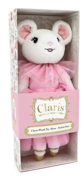High-fashion meets hugs with this premium 30cm Claris the mouse plush toy dressed in a ‘Parfait Pink’ gown, crafted from soft tulle. Claris not only wears her signature gold shoes, but a big smile on her face – ready for her next adventure across the globe – or into your arms for a warm embrace!