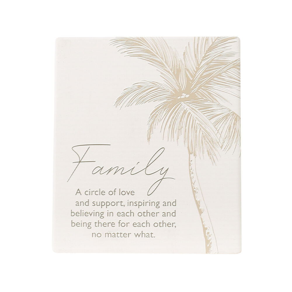 A Verse about family. Ceramic verse with embossed design, stand and hanging hook.