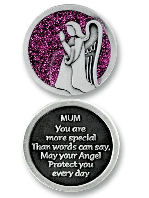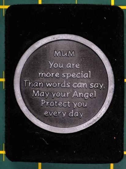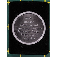 A beautifully-designed coin that fits easily into your pocket, wallet or purse that contains a message, prayer or reading on the reverse side: "Mum, you are more special than words can say, may your angel protect you every day."