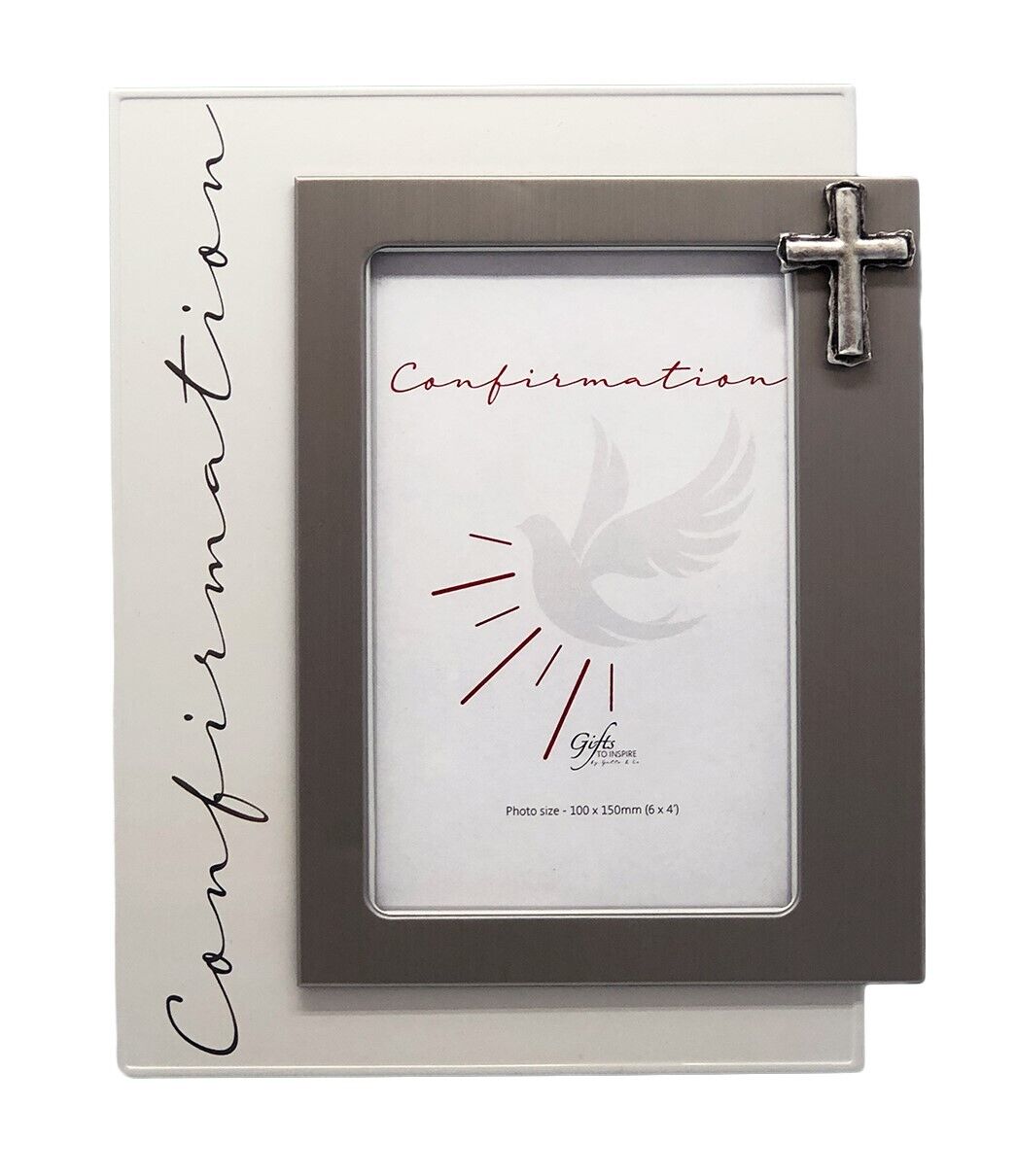 This beautiful photo frame is the perfect gift for anyone about to complete their Confirmation and is intricately detailed with a silver-coloured cross beside the space for a photo.