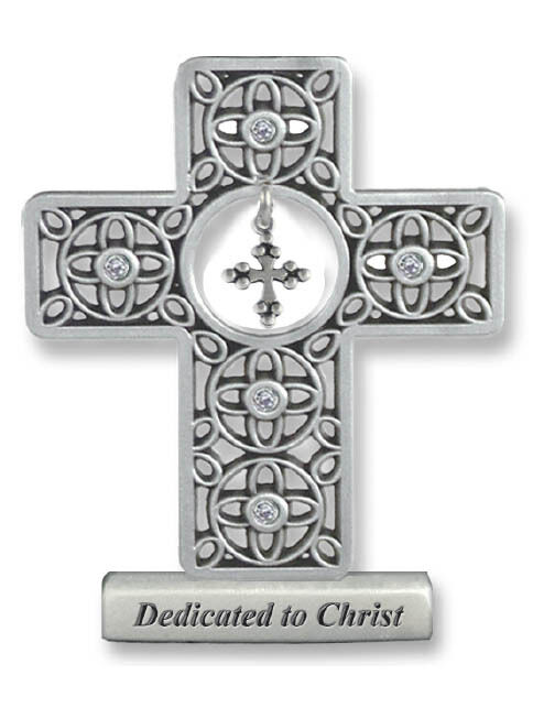 Embellised cross on base. The Base of the Cross reads "Dedicated to Christ".