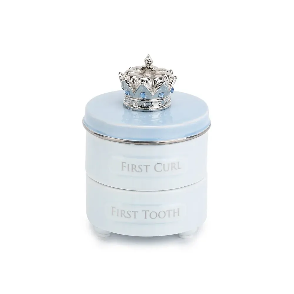 Store your baby's first curl and first tooth in this adorable keepsake box. With stackable compartments for safe storage of your baby's precious memories. This Keepsake box would make the perfect gift for a baby showers or baptisms.