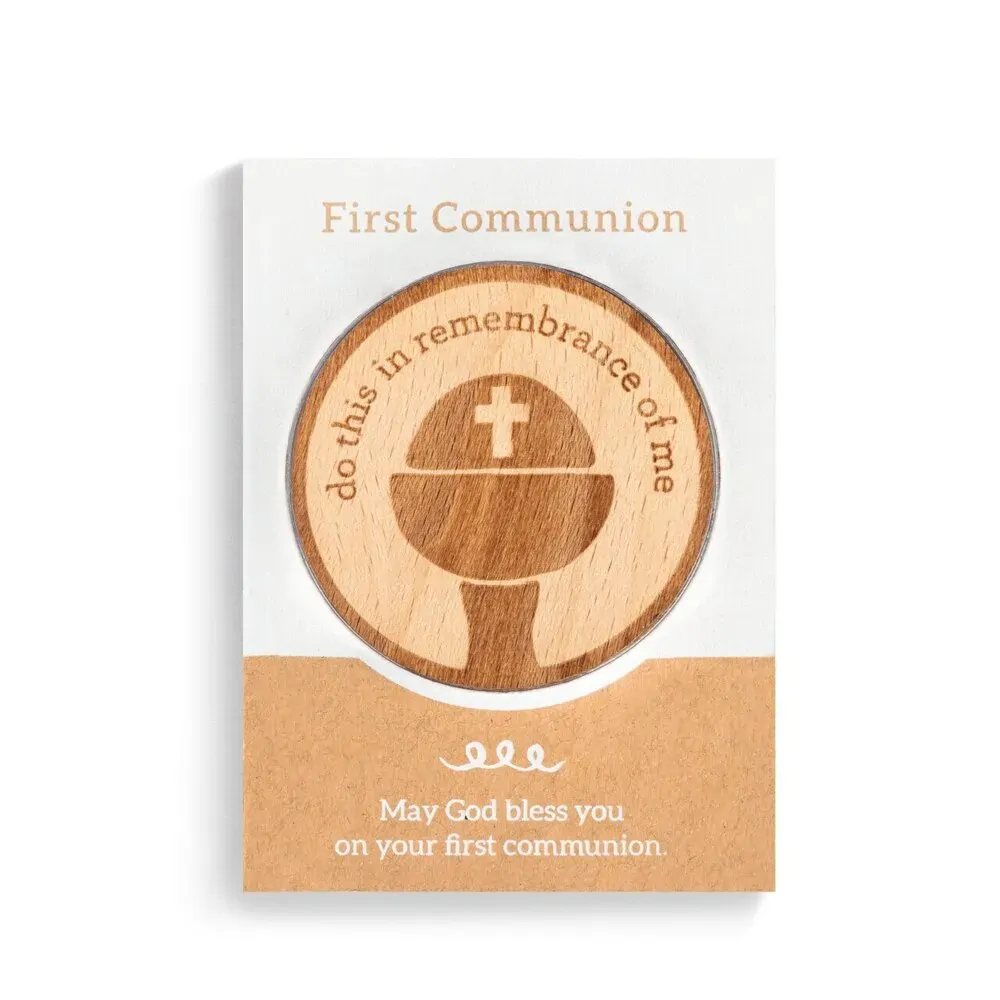 The lovely First Communion Token is the perfect thoughtful present for any little one. This unique wooden token features a dove on one side with the sentiments of, "First Holy Communion," on the other for a memorable keepsake. This piece is a part of the curated Cherished Blessings collection. This line will help get any little girl or boy excited for their first spiritual experiences, from learning how to pray the rosary to experiencing their First Communion. Each piece is lovingly designed and includes special prayers, Bible verses and more to elevate their spirits and make truly memorable moments. This piece is the perfect present for any child or proud parent on your list.