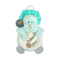 The playful Triceratops Teether Buddy is a wonderful option for any new little one or expecting parents on your list. This Triceratops-shaped teether buddy can attach to any stroller and features a plush material with BPA-free silicone feet and crinkly mylar paper at the ears. This piece is part of the curated Teether Buddies nursery collection. This line will make teething much easier on babies, moms and dads, with an on-the-go design that can attach to any stroller or carrier with ease. Each piece in this collection is designed with a machine washable plush material and BPA-free silicone feet with mylar paper in the ears for a fun crinkling effect as baby chews. This teether buddy will make the perfect present for any little one or expecting parents on your gifting list.