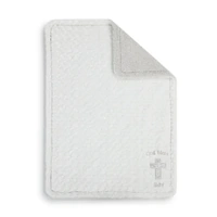 The cute God Bless Baby Blanket is a lovely present option for any little one with religious parents. This plush blanket features neutral gray and white fabric with heartfelt sentiments and a beautiful sewn-on patch depicting a cross. This piece is part of the curated Tender Blessings nursery collection. This line will make celebrating life’s little moments fun and memorable, such as getting ready for bed, performing nighttime prayers or enjoying family time. This line features a collection of super soft plushies, blankies and more that will help them feel safe and snuggly at bedtime and will encourage spirituality. Each piece is crafted using safety-tested materials, soft machine washable fabrics and beautiful colors for the perfect companion. This blanket is a thoughtful present for any little one, new parents or expecting parents on your list.