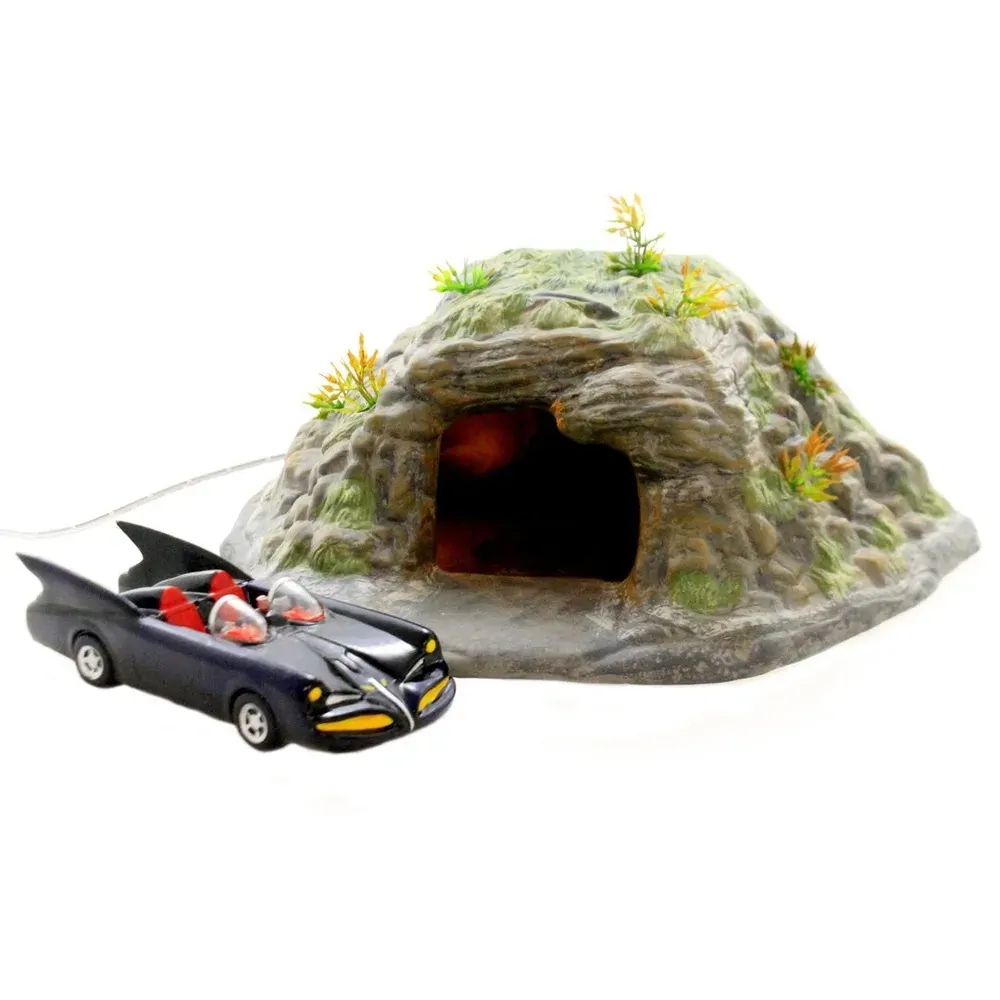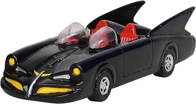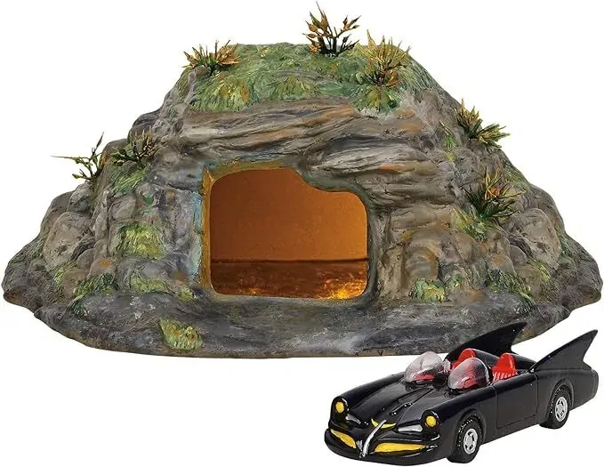 Some of American pop culture's most beloved characters are superheros and many of these costumed crime-fighters find their origins in the colorful pages of DC Comics Founded in the early 1930s DC created the superhero genre and has given life to many of its most iconic characters especially Batman the Dark Knight and Superman the Man of Steel From the golden age to the modern age of comics Batman and Superman have endured as champions of justice and stand today among the most famous fictional characters in the world Now you can bring the heroics of DC's superheros to your Village with detailed comic-accurate figurines and models new from Department 56 When the Bat Signal appears in the sky the Dark Knight jumps into his beautiful black and red supercar the Batmobile modeled after its appearance in the classic 60s TV series Also included is the hidden entrance to the Bat Cave