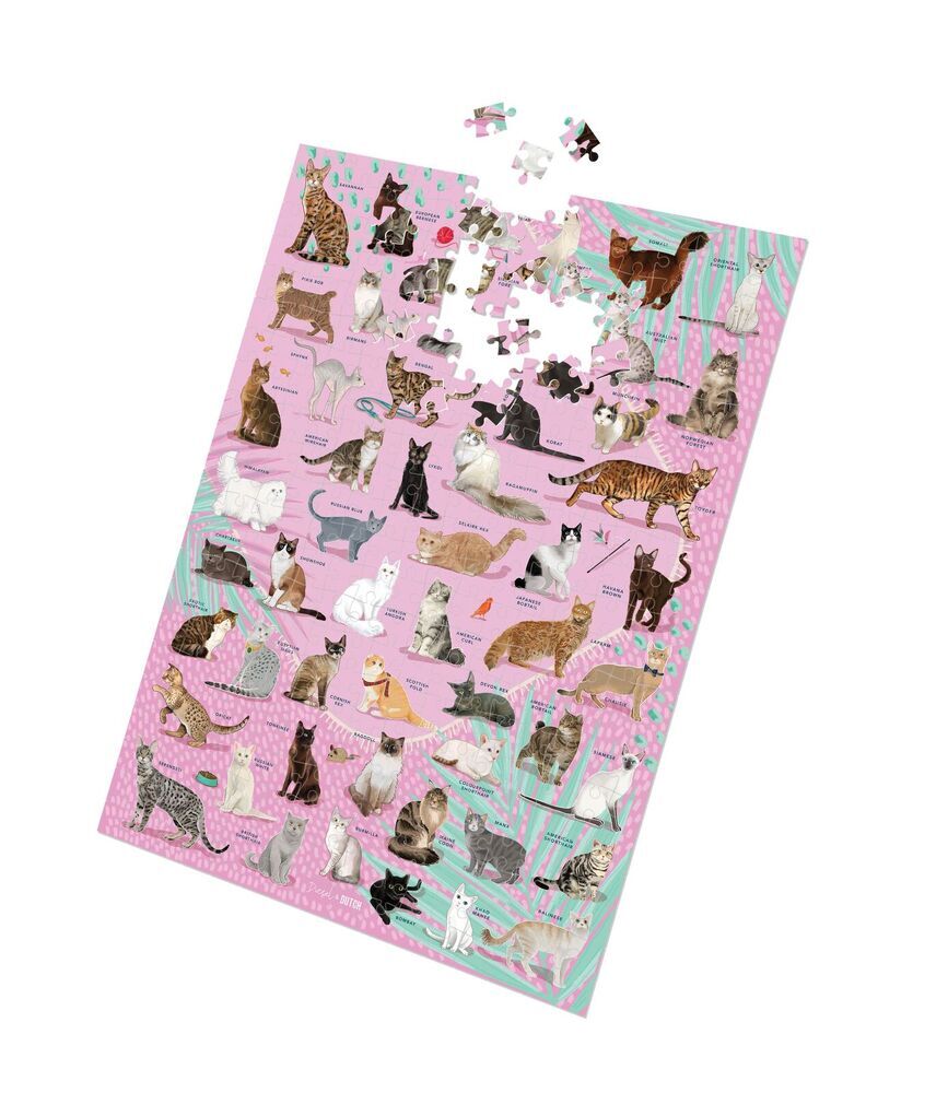 Featuring 54 favourite cat breeds, the Fancy Felines puzzle is a challenging puzzle and fun for all ages 10+. A great family puzzle that will bring hours of entertainment and excitement as the pieces come together and the cats emerge on a stunning background design.