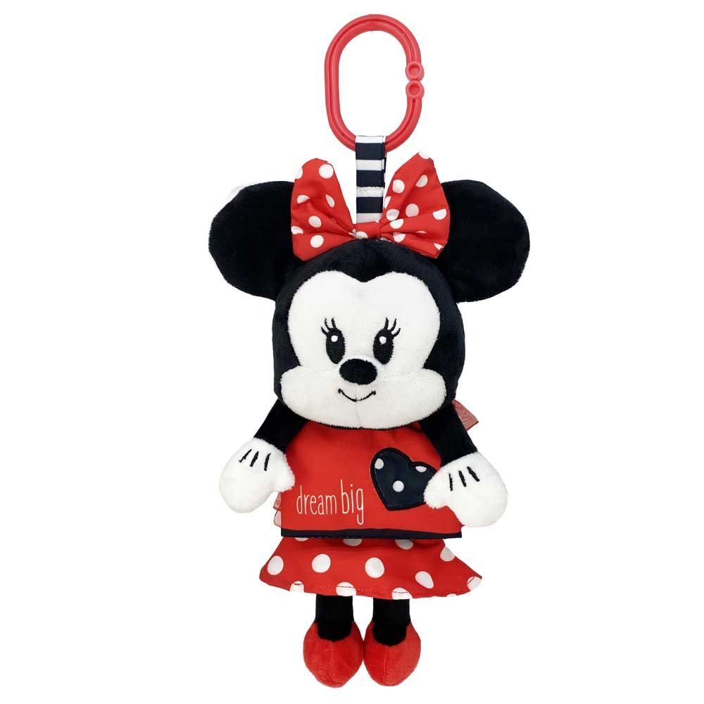 The delightful Minnie Mouse unfold body soft book includes multiple textures to promote baby's tactile and auditory development. The perfect size for little hands to grasp, this soft book features an unfold for extended story telling, mirror, crinkle, peek-a-boo flaps and an on-the-go clip which easily attaches to baby's cot, pram or car seat. Suitable from birth.
