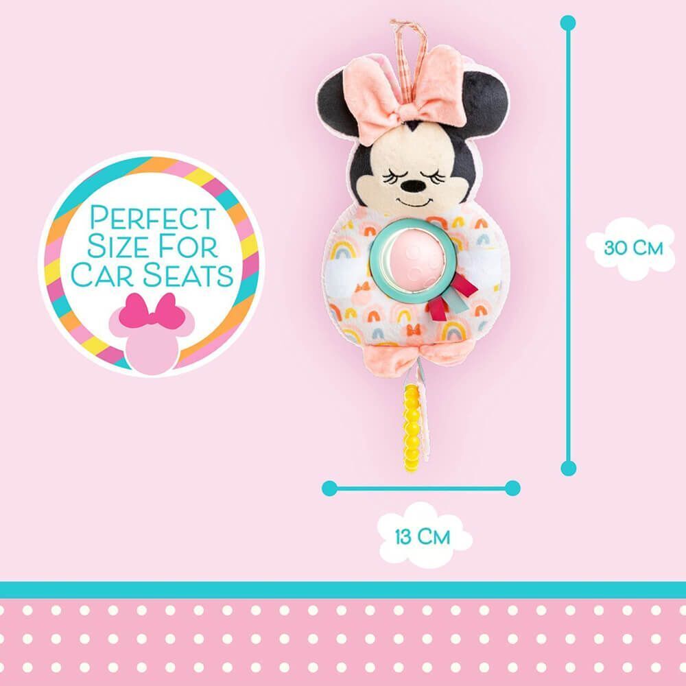 Keep baby happy and soothed with this adorable Minnie Mouse activity toy featuring soft texture, on-the-go velcro strap, spinner ball rattle, ribbons, teether rings, crinkle, and double-sided design. Hang this soft toy from a stroller or crib and watch baby's eyes light up from all the fun and developmental features! Minnie Mouse is an instantly recognizable friend, bringing sweet memories from childhood as it helps children to learn, play, and grow.