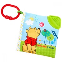The perfect accessory to keep baby entertained on-the-go, this Winnie the Pooh Accordion Soft Book has illustrations of Pooh, Tigger, Piglet and Eeyore. It features crinkles for auditory development, mirror, teether and textures and bright colours and patterns for visual stimulation. A teether attached to the corner will help to soothe baby's sore gums, whilst the handy hook is perfect for attaching the book to a cot or a pram.