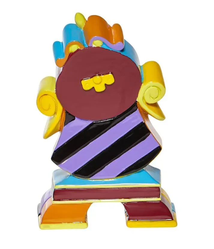 Beauty and the Beast's Cogsworth has been given an enchanting makeover in this spectacular Britto sidekick edition. Decorated with bright colours and unique patterns, this piece will bring nostalgia to fans alike with accurate detailing of Cogsworth's clock face to his swinging pendulum.