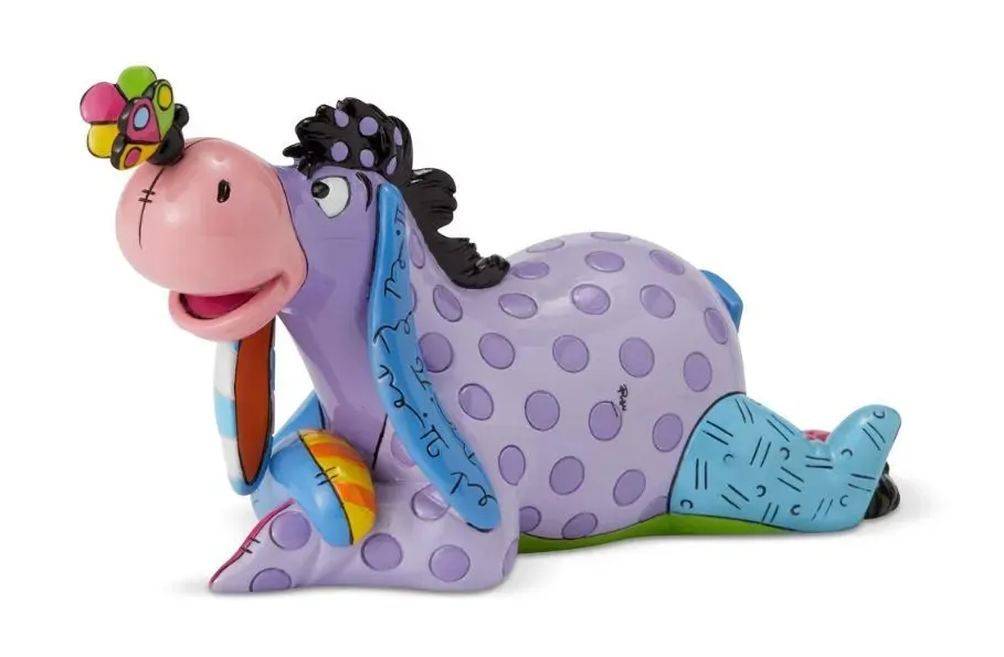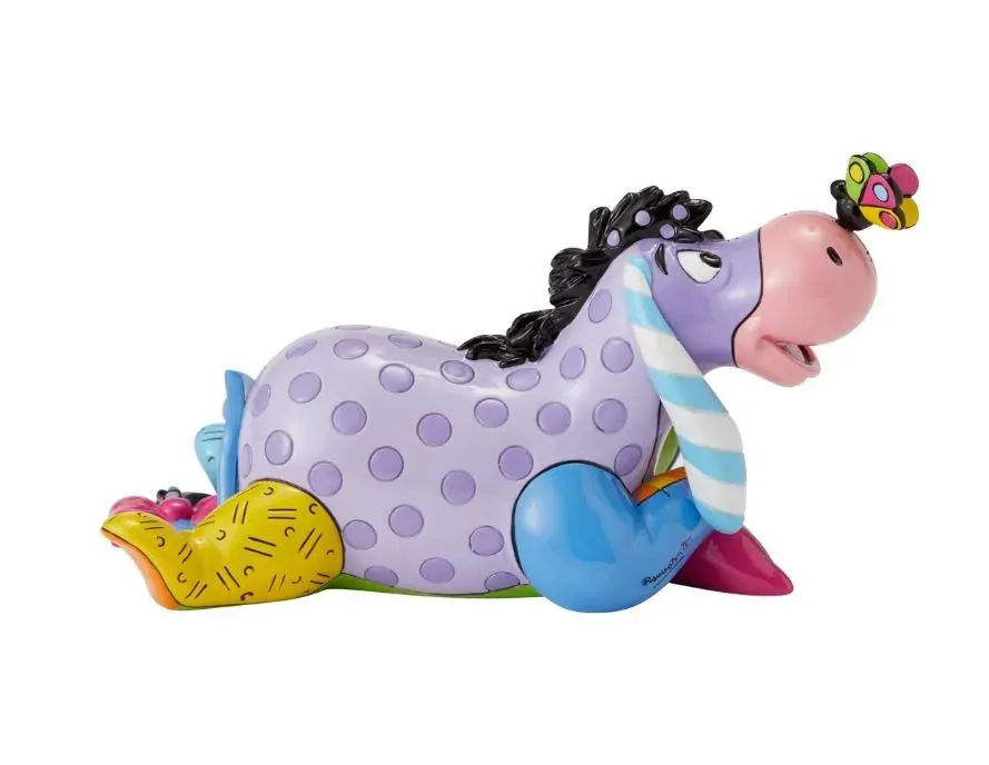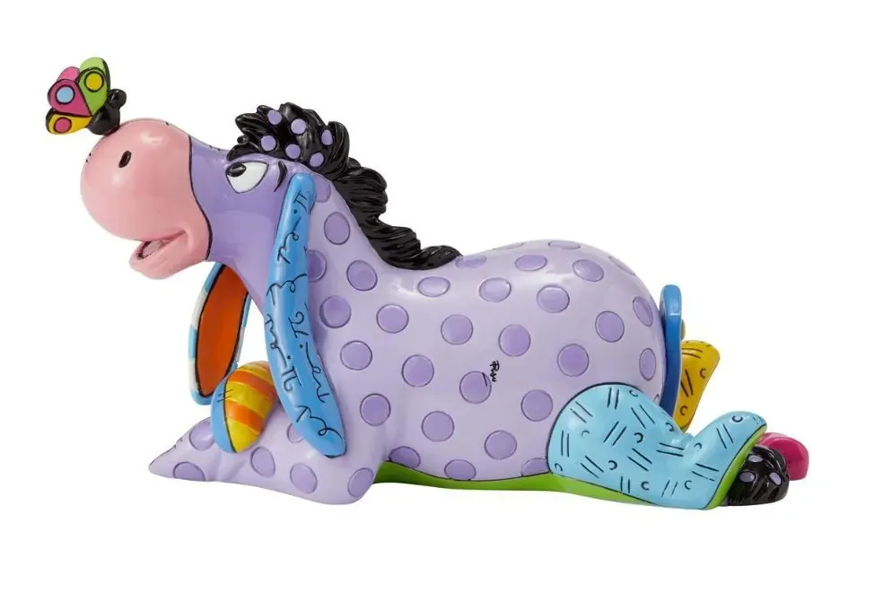 Eeyore enjoys nature and stares curiously at the butterfly perched on his nose. Romero Britto bestows a dose of optimism to our favourite gloomy donkey, reimagining Eeyore in lovely lavender and pretty polka dots.