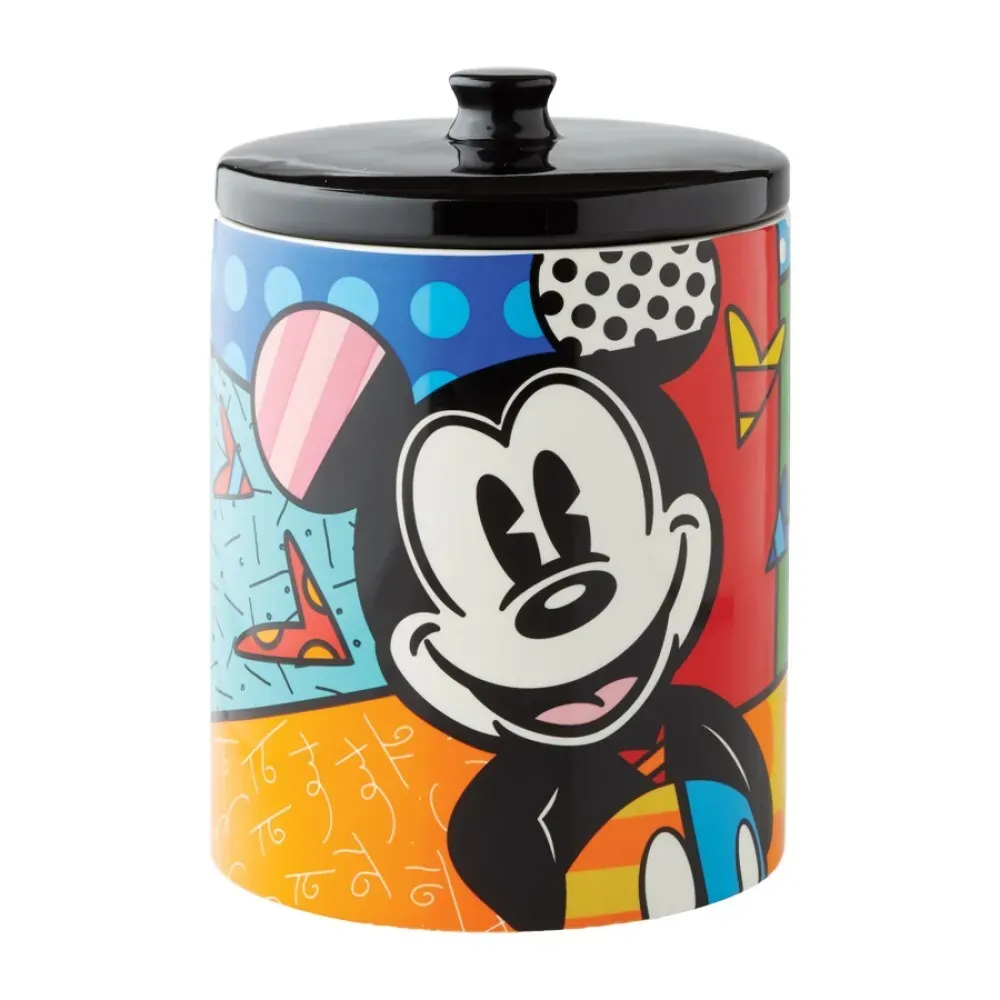 Romero Britto's warmth and optimism shines brightly in this Mickey Mouse cookie jar. Unique and colourful patterns of polka dots, stripes and hearts will surely warm up any kitchen.