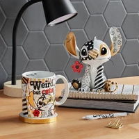 This large Midas Disney Britto Mug has been decorated in Romero Britto’s signature pop art style, with the midas touch! With strong contrasting accents in black, white, red and gold, the 400ml capacity mug comes packaged in a gift box and includes a Romero Britto signature on the inside lip. Available in an iconic Stitch design, with the caption 'Weird but cute' this mug will make a statement gift for a Disney fan during the 100th Anniversary in 2023.