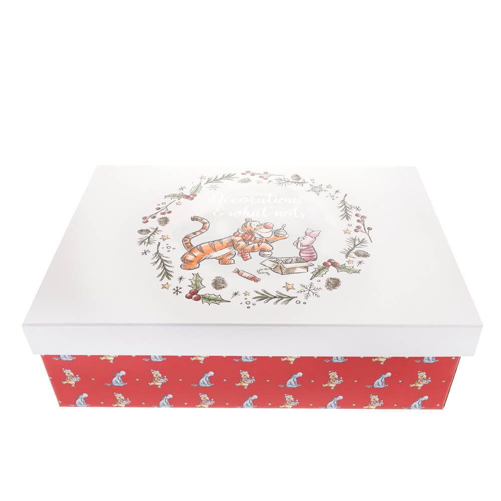 Store you Christmas treasures in style with this practical storage Box. Featuring the caption 'Decorations and Whatnots' on the the front as well as imagery of Tigger and Piglet, this festive storage solution will bring some cheer at Christmas time.