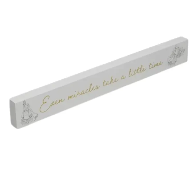 Bring some words of Disney wisdom to any space with this collectible Cinderella desk plaque. This charming white 40cm plaque features illustrations of Cinderella and gold foiled quote/sentiment.
