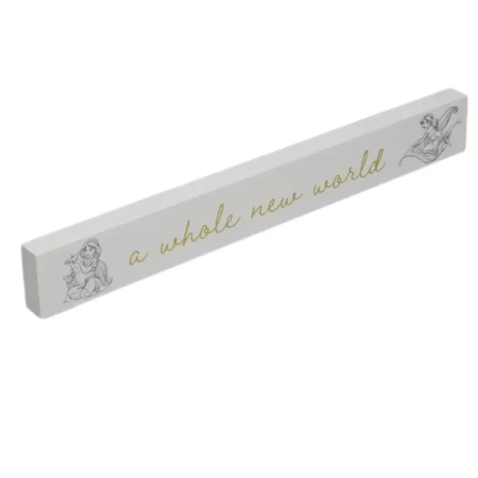 Bring some words of Disney wisdom to any space with this collectible Jasmine desk plaque. This charming white 40cm plaque features illustrations of Jasmine and gold foiled quote/sentiment.